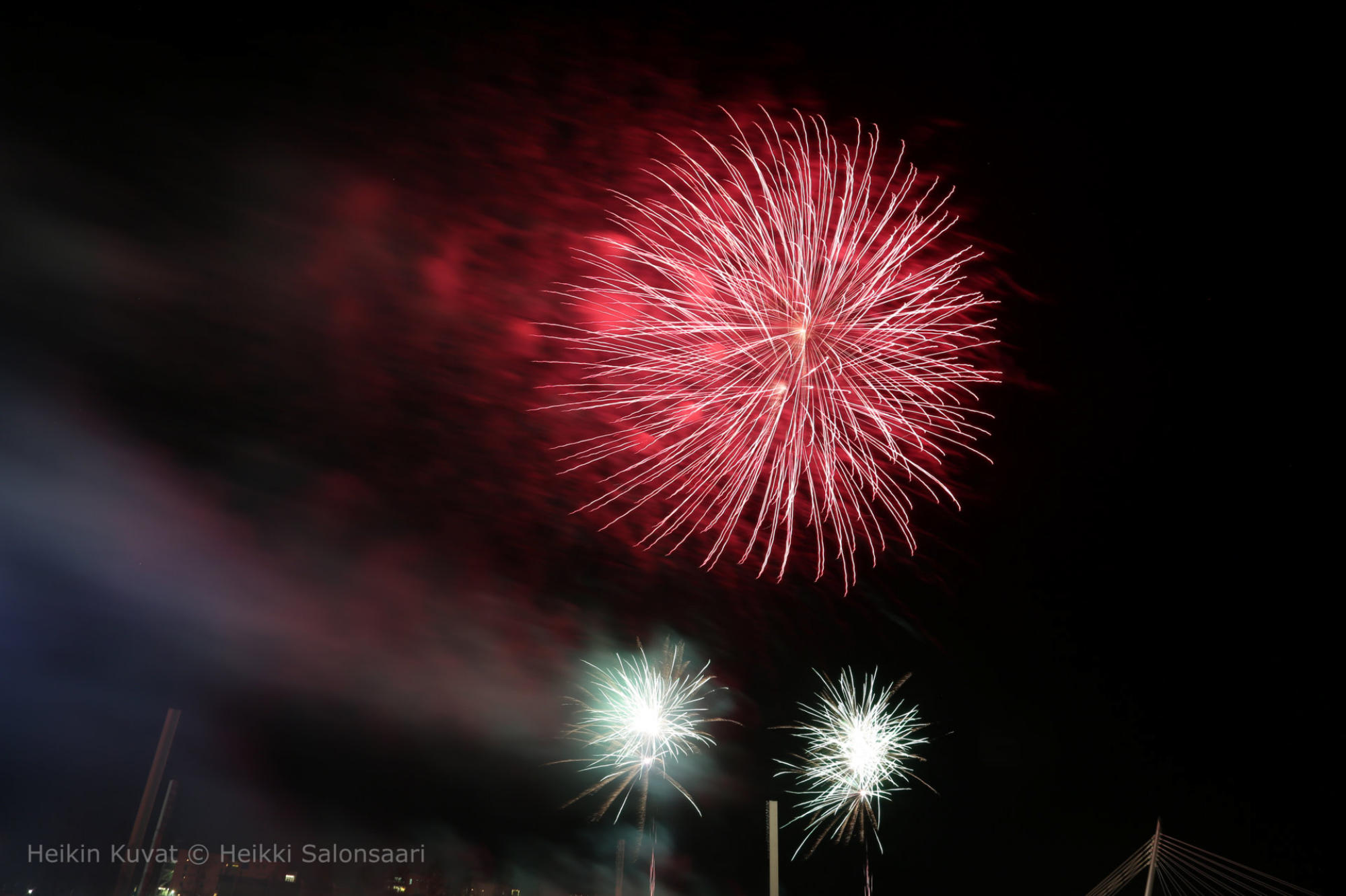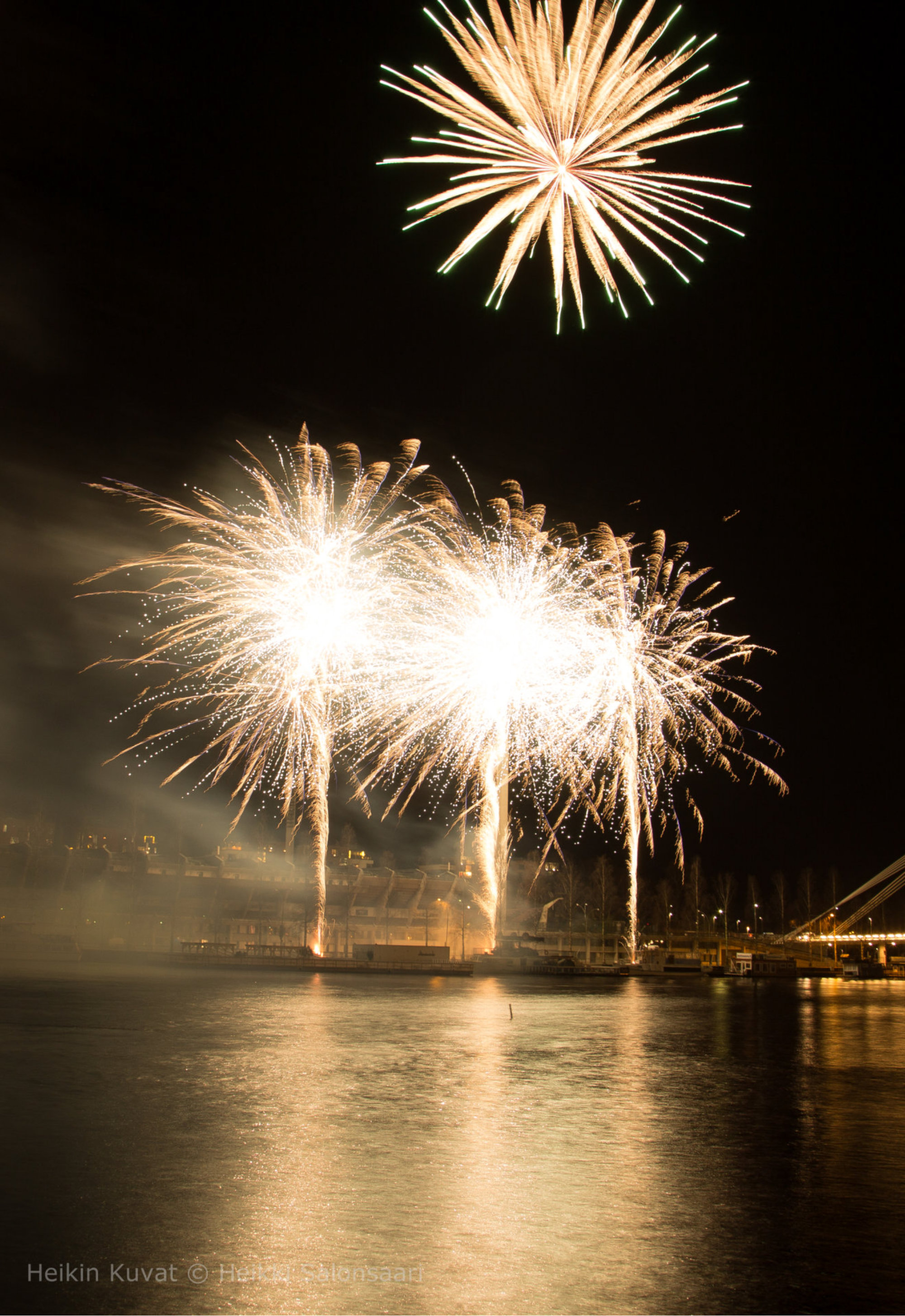 Vuoden 2020 vastaanottoTampereenyrittäjätjärjestivätilotulistuksenuudenvuodenaattona.RkaetitammuttiinRatinaurheilukentänvierestä.Katsoimmeja kuvasintapahtumaaVuolteensillalta.Tutkinetukäteenohejitailotulituksenkuvaamisesta.Ohjeetolivatyksikertaiset.Kamerajalustalle, aukko 8.0 ja valotus 5 sekuntia. Tein ohjeen mukaan ja alla on muutamia kuvia tapahtumasta